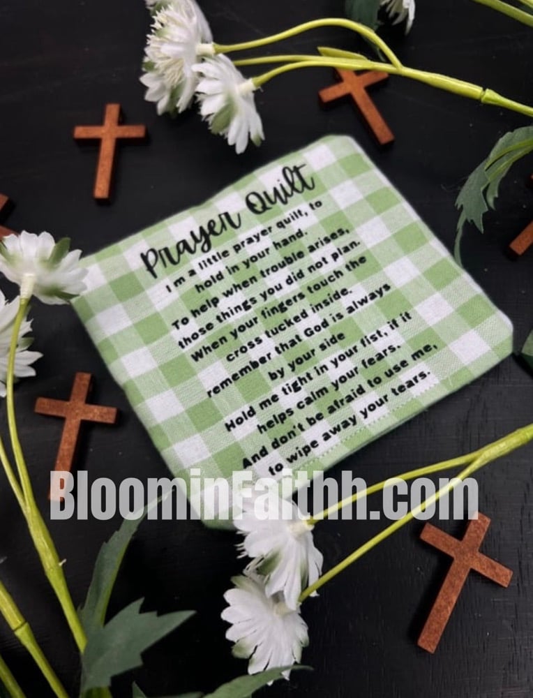 ✨A small, handcrafted prayer quilt designed to bring comfort, peace, and faith wherever it’s held. Each quilt features a tiny cross tucked safely inside, serving as a gentle reminder of God’s presence and love. Perfect for moments of prayer, reflection, or when you simply need something to hold onto.